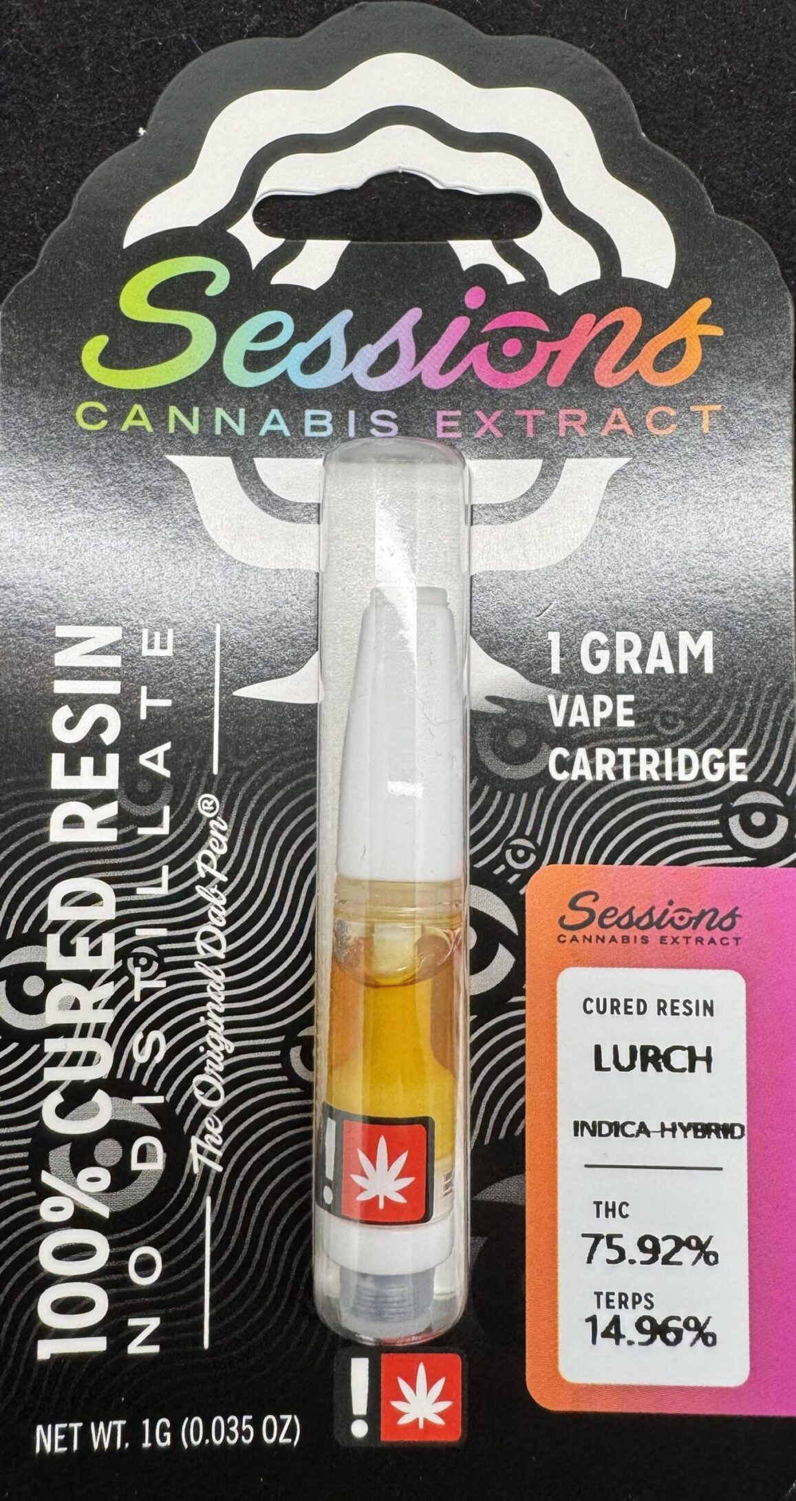 Sessions CR Cart Lurch is an Indica Hybrid at 15% Terps and 75% thc! | Before tax $14.58 | After Tax: $17.50 |